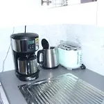 부엌에서 전기 주전자, 주방용품, 유리 제품을 완비한 이 숙소는 객실에서 평면 스크린 TV, 식당, 방음 창문을 제공합니다. 이 아파트는 최대 2명까지 수용할 수 있습니다. 저자극성 베개, 리넨 있는 침대는 고객님의 편의를 위해 준비되어 있습니다. 목욕 시트, 목욕 시트, 수건이 있는 욕실 1개가 있습니다.